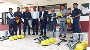 घिरिङ गाउँपालिकाले प्रहरी चौकीलाई विपद् ब्यवस्थापनको सामाग्री बितरण