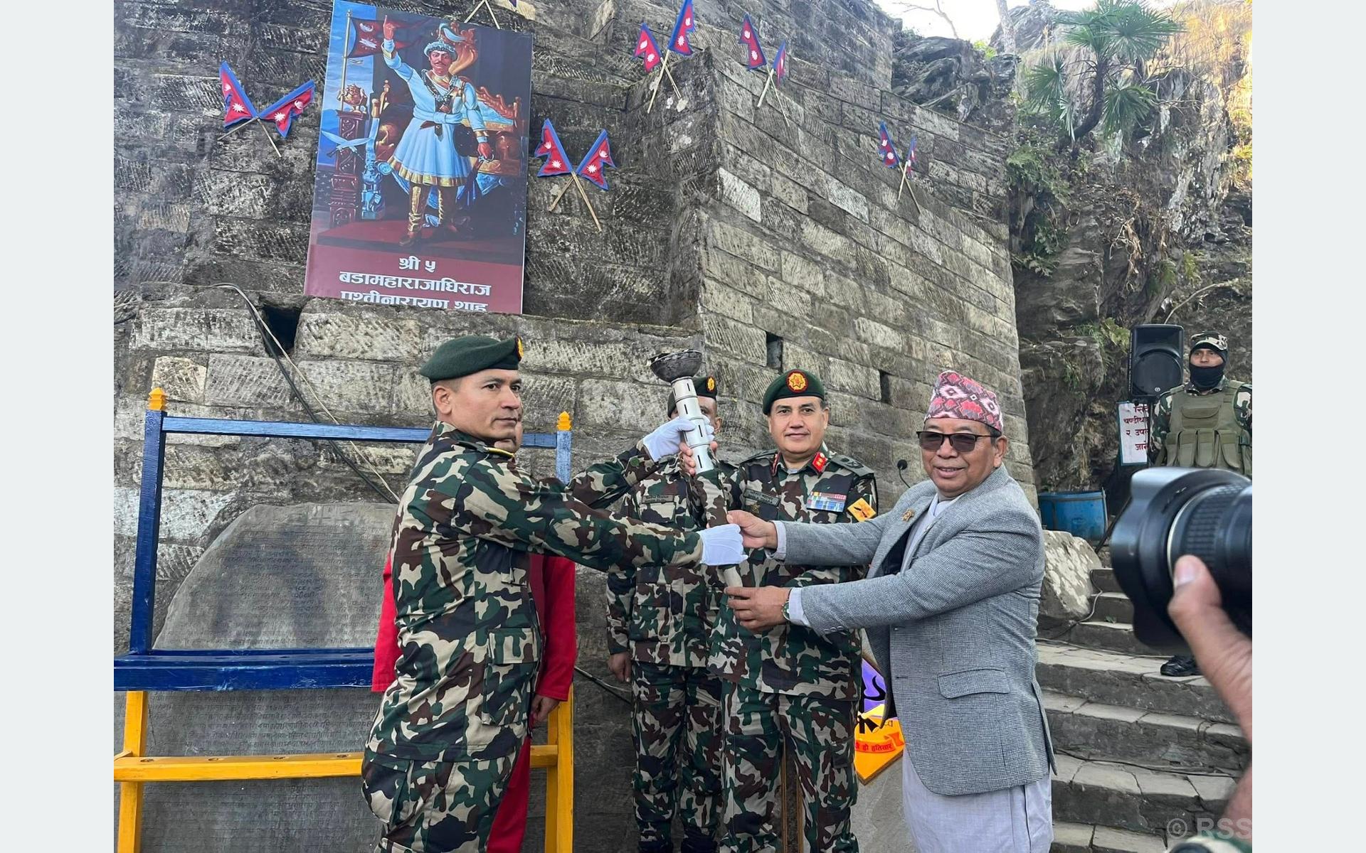 पृथ्वी जयन्ती तथा राष्ट्रिय एकता दिवसका अवसरमा पुस २७ गते हनुमानढोका दरबारमा आयोजना हुने कार्यक्रमका लागि सो टोली पुस २६ साँझसम्म हनुमानढोकास्थित गुल्मलाई टर्च र झन्डा हस्तान्तरण कार्यक्रम छ । ३०४औँ पृथ्वी जयन्ती तथा राष्ट्रिय एकता दिवस मनाउने क्रममा गोरखाबाट पदयात्रा सुरु गरिएको नेपाली सेनाले जनाएको छ ।