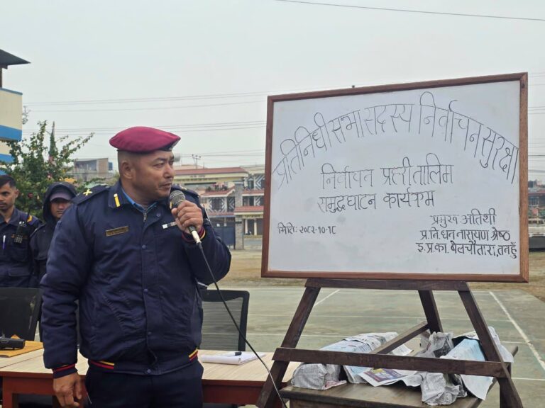 जिल्ला प्रहरी कार्यालय तनहुँले निर्वाचनमा खटिने निर्वाचन प्रहरीका लागि आजदेखि तालिम सञ्चालन गरेको छ । निर्वाचनमा खटिनेलाई जिल्लाका पाँच ठाउँमा तालिम सञ्चालन गरिएको हो ।