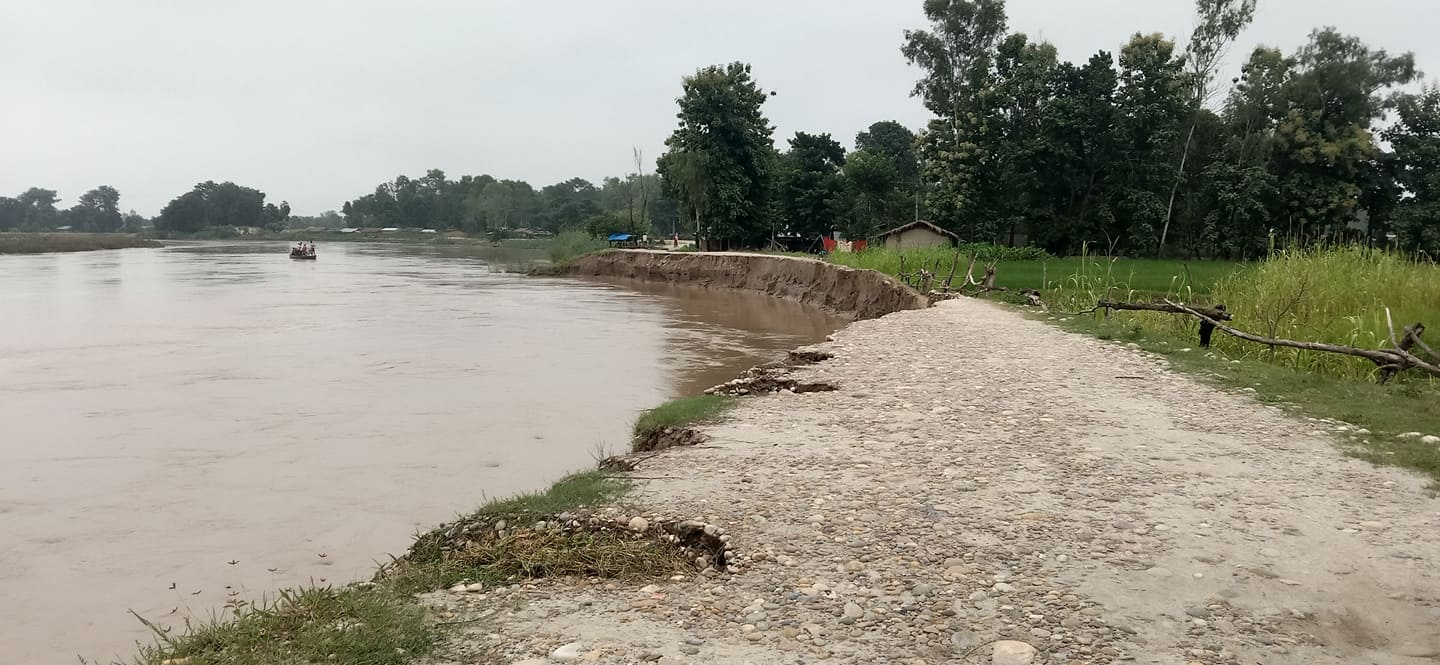 पुलको दायाँबायाँ तटबन्ध नहुँदा कटानको जोखिममा परेको हो ।” स्थानीयवासीले नदी नियन्त्रणका लागि कुकाठ, बाँस, झारपात प्रयोग गरेर बोरामा बालुवा भर्दै जैविक तटबन्ध निर्माण गरिरहेका छन् । पुल निर्माण भएपछि कान्द्रामा सञ्चालन हुँने डुङ्गा विस्थापित भएको छ भने नागरिकलाई पुलले आवागमनमा निकै सहज भएको छ । वडा नं ९ र ४ का १ सय ५० भन्दा बढी गाउँलेले चार दिनदेखि निरन्तर दैनिक श्रमदान गरेर तटबन्ध निर्माण गरिरहेको वडा नं ९ का अध्यक्ष सञ्जित चौधरीले बताउनुभयो । “वडा नं ९ र ४ वडाका दैनिक डेढ सयदेखि दुई सय बढी हामीहरूले श्रमदान गरिरहेका छौँ । बल्लतल्ल बनेको पुल यसैवर्ष नदीको जोखिममा परेपछि पुल जोगाउन गाउँले लागेका हौँ ।” वडाध्यक्ष चौधरीले भन्नुभयो, “वर्षौँंदेखिको गाउँलेको माग रहेको झोलुङ्गे पुल नै खतरामा पर्ने देखेपछि श्रमदान गरेरै बचाउने प्रयास गरिरहेका छौंँ ।” कम्तीमा यो बर्खा पुल बचाउन सकियो भने अर्को वर्ष नदीमा तटबन्ध गरेर पुल बचाउन सकिन्छ ।” जैविक तटबन्ध निर्माणमा स्थानीय नागरिकका साथै नगरपालिकाका जनप्रतिनिधिसहित संघीय सांसदले पनि साथ दिनुभएको छ ।