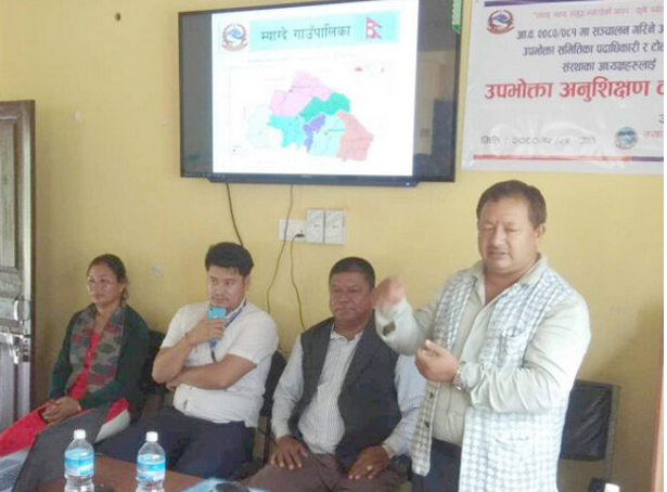 तनहुँको म्याग्दे गाउँपालिकाले उपभोक्ता समितिलाई अनुशिक्षण सुरु गरेको छ । चालु आर्थिक वर्ष २०८०÷०८१ मा सञ्चालन हुने आयोजनाका लागि उपभोक्ता समितिका पदाधिकारी र टोल विकास संस्थाका अध्यक्षलाई अनुशिक्षण सुरु गरेको हो । गाउँपालिकाबाट यो वर्ष उपभोक्ता समिति मार्फत् सञ्चालन गरिने विकास आयो जनाका प्राविधिक पक्षबारे जानकारी गराउन अनुशिक्षण सुरु गरिएको योजने शाखा प्रमुख श्रीराम खनालले जानकारी दिनुभयो । । खनालले भन्नुभयो , ‘उपभोक्ता समितिमार्फत् विकास आयोजना सञ्चालनका लागि पदाधिकारीलाई आवश्यक कुराबारे जानकारी गराइएको छ, सबै वडामा अनुशिक्षण हुनेछ ।’ अनुशिक्षणमा गाउँपालिकाका अध्यक्ष श्रीप्रसाद श्रेष्ठ, प्रमुख प्रशासकीय अधिकृत जितराज राना, वडाध्यक्ष शिवबहादु लगायतको उपस्थित रहेको थियो । अनुशिक्षण वडा नम्बर ५ बाट सुरु भएको अनुशिक्षण सबै वडामा सञ्चालन गरिनेछ ।
