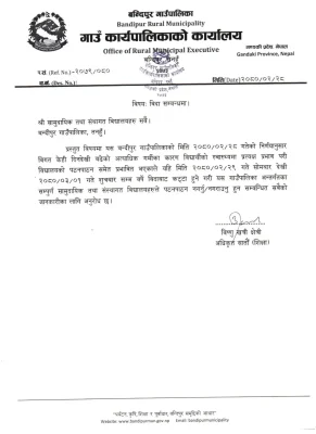 केही दिन देखी गर्मी अत्यधिक बढेपछि बन्दीपुर गाउँपालिका भित्रका सवै विद्यालयहरु सोमबार देखी पठनपाठन बन्द गर्ने निर्णय गरेको छ ।गाउँपालिका भित्रका सम्पुर्ण सामुदायिक र संस्थागत विद्यालय बन्द गर्ने निर्णय गरेको हो ।सबै विद्यालय असार १ गते सम्म बन्द रहने गाउँपालिका अध्यक्ष सुरेन्द्र बहादुर थापाले जानकारी दिनुभयो । “गर्मी बढेपछि बालबालिकाहरुको स्वास्थ्यमा समेत असर पर्न सक्ने भएकाले विद्यालयहरु बन्द गरिएको हो । बन्दीपुर गाउँपालिका भित्र करिव ५ हजारभन्दा बढी विद्यार्थीहरु अध्ययनरत रहेको गाउँपालिकाका शिक्षा, युवा तथा खेलकुद शाखाका अधिकृत बिष्णु खत्रीले जानकारी दिनुभयो ।