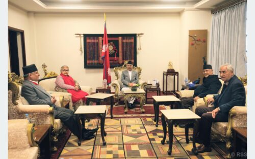 राष्ट्रपतिसँग प्रधानमन्त्रीसहित तीन दलका शीर्ष नेताको भेट