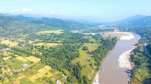 घिरिङ गाउँपालिका–१, कालीगण्डकी नदी तथा नदी किनारमा रहेको पुट्टारको बस्ती र खेती । तस्बिर: रासस