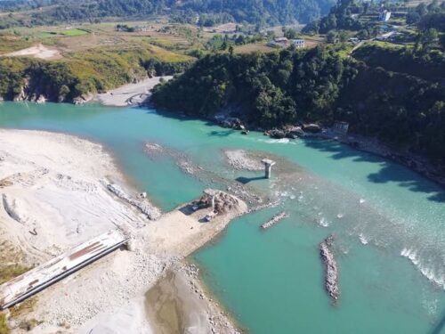 तनहुँको ऋषिङ गाउँपालिका- ४ मधुवन र नवलपुरको बुलिङटार गाउँपालिका-४ कोखेटार जोड्ने कालीगण्डकीको गडगढीघाटमा अलपत्र अवस्थामा रहेको पुल। ४ वर्षमा सम्पन्न गर्ने गरी वि.सं २०७३ असार २९ गते सम्झौता भएको पुलको काम हालसम्म ६० प्रतिशत मात्रै सकिएको छ। तस्बिरः रासस
