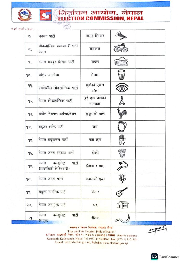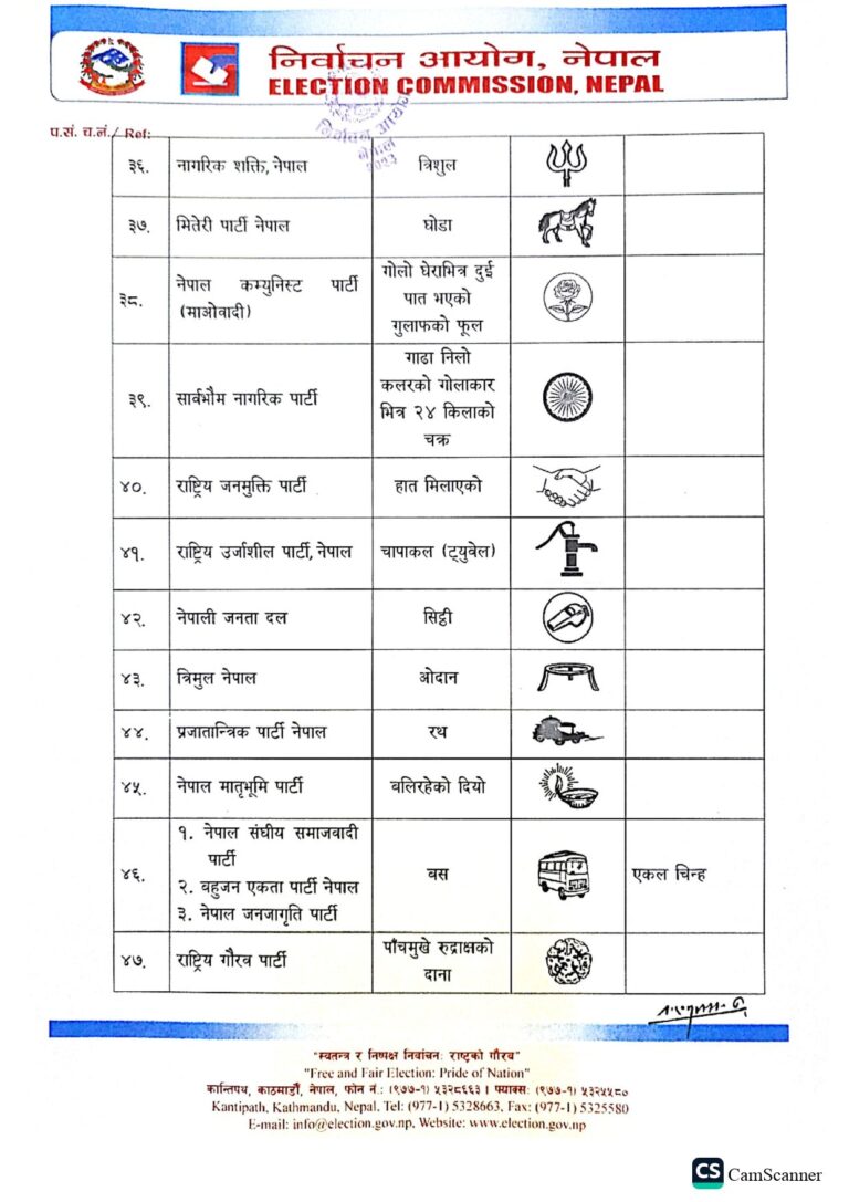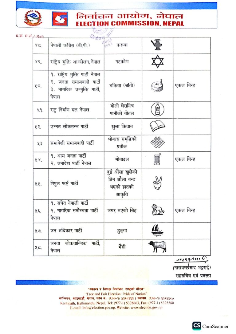 ती दलहरूले ५८ वटा चुनाव चिह्नबाट चुनाव लड्ने गरी बन्दसूची पेस गरेको निर्वाचन आयोगका प्रवक्ता नारायणप्रसाद भट्टराईले जानकारी दिए ।